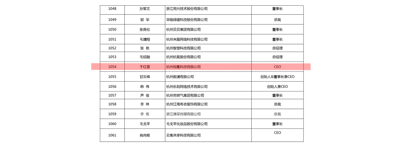 杭州視氪科技有限公司CEO于紅雷先生入選第六屆“品質(zhì)杭商”61位候選者名單。